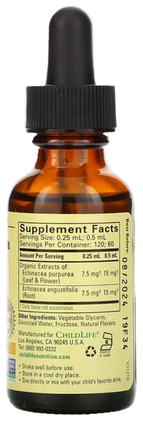 ChildLife Echinacea - это высококачественная жидкая добавка, содержащая экстракт эхинацеи, известный своими поддерживающими свойствами для иммунной системы. Эхинацея используется для повышения естественных защитных сил организма, особенно в периоды сезонных простуд и гриппа.