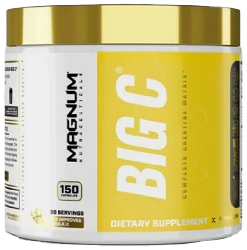 Magnum Big C - это комплексный препарат для увеличения силовых показателей, набора мышечной массы и ускорения восстановления после тренировок. Включает четыре вида креатина и экстракты трав для улучшения усвоения. Креатин - естественное соединение, обеспечивающее энергией мышцы. Организм синтезирует его из аминокислот, а также получает с мясом и рыбой. Однако для спортсменов и людей с высокой физической нагрузкой этого недостаточно. Например, порция Magnum Big C эквивалентна двум килограммам говядины.