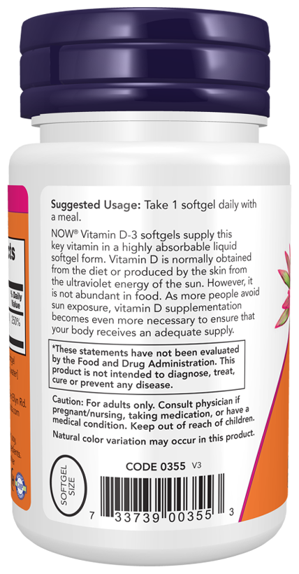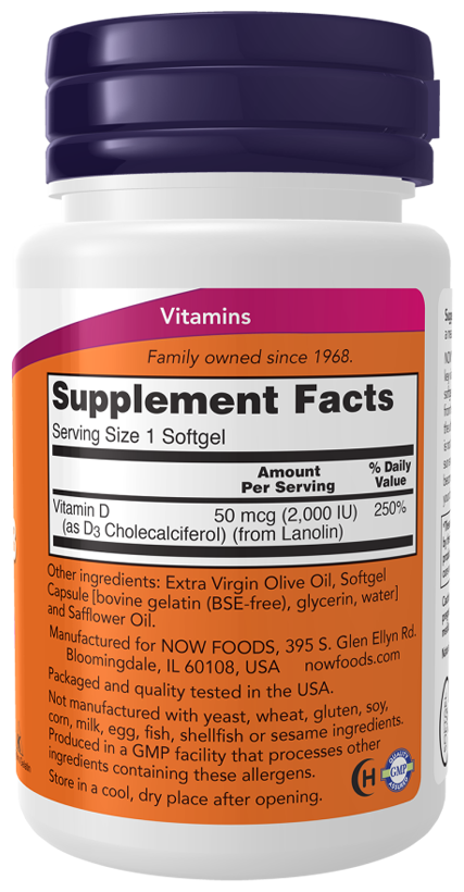 NOW Vitamin D3 2000 iu 120 softgels